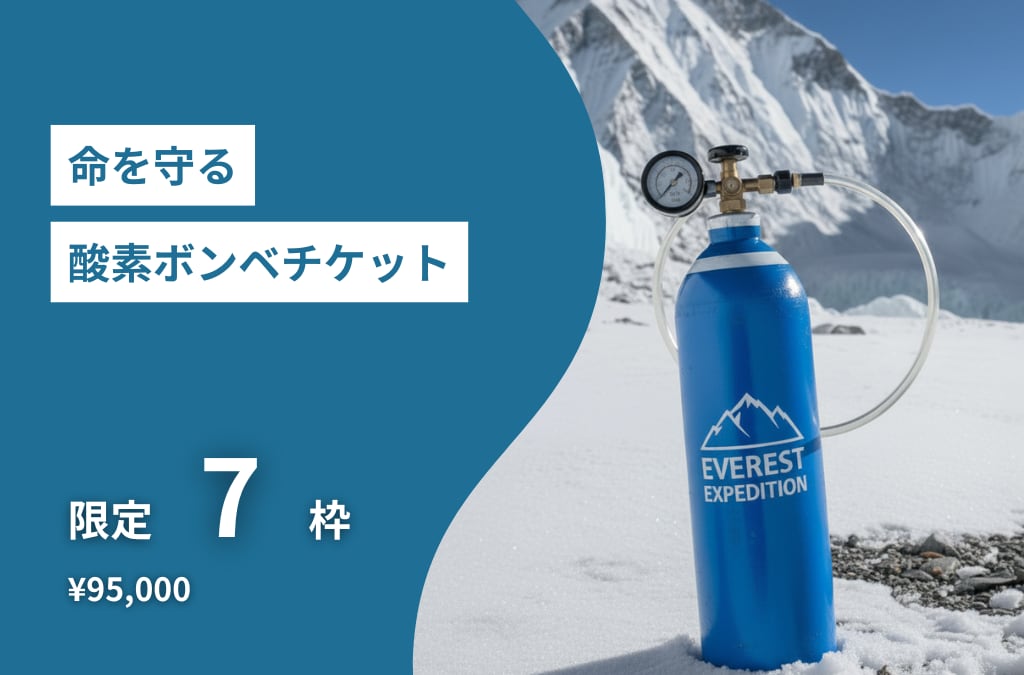 高所で命を守る酸素ボンベの支援チケット。